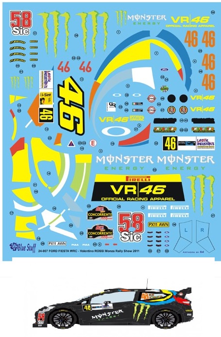 BLUE STUFF DECALS – FORD FIESTA WRC VALENTINO ROSSI MONZA RALLY SHOW 2011 1/24 24-007